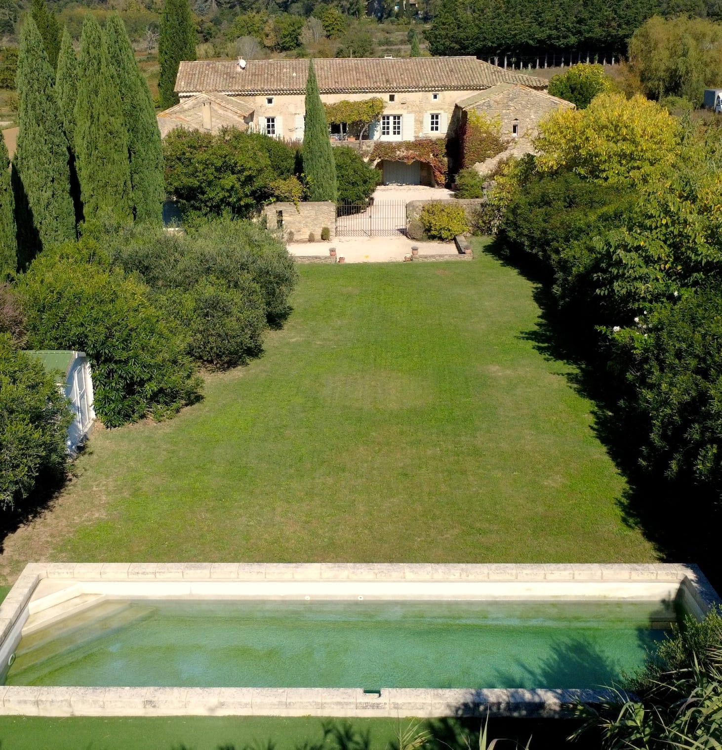 Surrounded by orchards, vineyards, and market gardens, just twenty minutes from Uzès and close to a charming village with shops, école, bistro and weekly market, this former 19th-century silk farm (magnanerie) began a new chapter in the early 2000s.